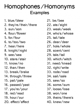 Homophones Examples Worksheet