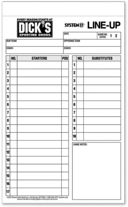 DICK'S Sporting Goods Baseball/Softball Line Up Cards ...